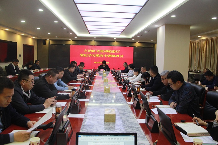 4月19日,自治区文化和旅游厅召开党纪学习教育专题部署会,深入学习贯彻习近平总书记重要讲话和重要指示精神,传达学习中央和自治区党的建设工作领导小组会议精神以及中共中央办公厅《关于在全党开展党纪学习教育的通知》和自治区党委办公厅《关于在全区开展党纪学习教育的实施方案》,安排部署全厅党纪学习教育工作。自治区党委宣传部副部长、厅党组书记、厅长蔡菊主持会议并讲话,厅党组班子成员,机关各处室、厅属各单位党政负责人参加会议。